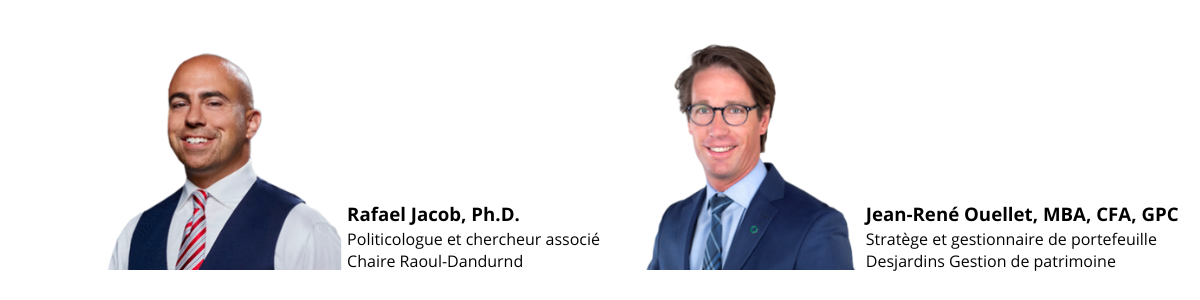 Nous aurons le plaisir d’accueillir deux conférenciers de renom : Rafael Jacob, politicologue, et Jean-René Ouellet, stratège en investissement et gestionnaire de portefeuille